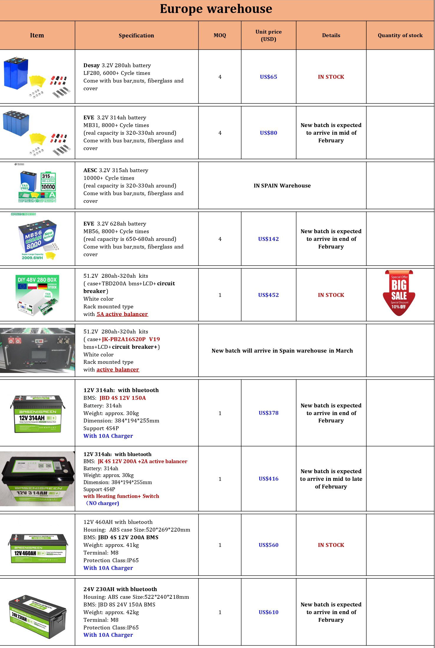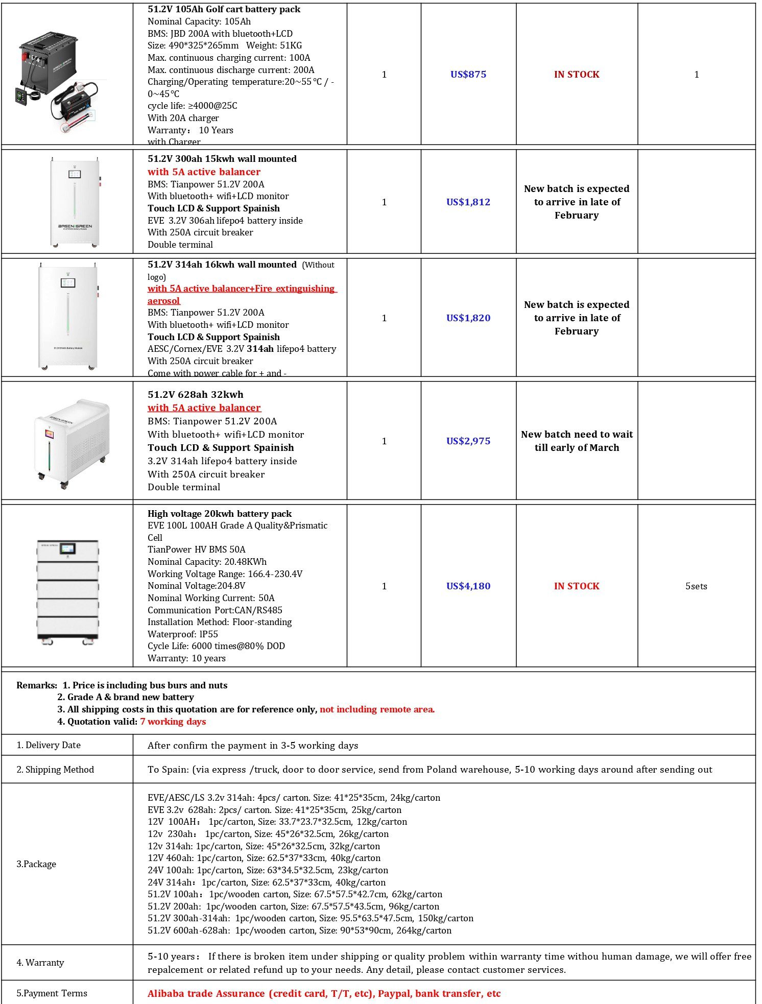 - (Ejemplo: Hello sheila, good day, I come from the group DIY LiFePO4 Batteries Spain, I want XX Cells EVE 280ah), si queremos las celdas desde el almacén Europeo también hay que indicárselo (from European warehouse), EN EL ALMACÉN EUROPEO SOLO ESTÁN DISPONIBLES LAS QUE SE INDICAN EN LA IMAGEN DE ARRIBA.