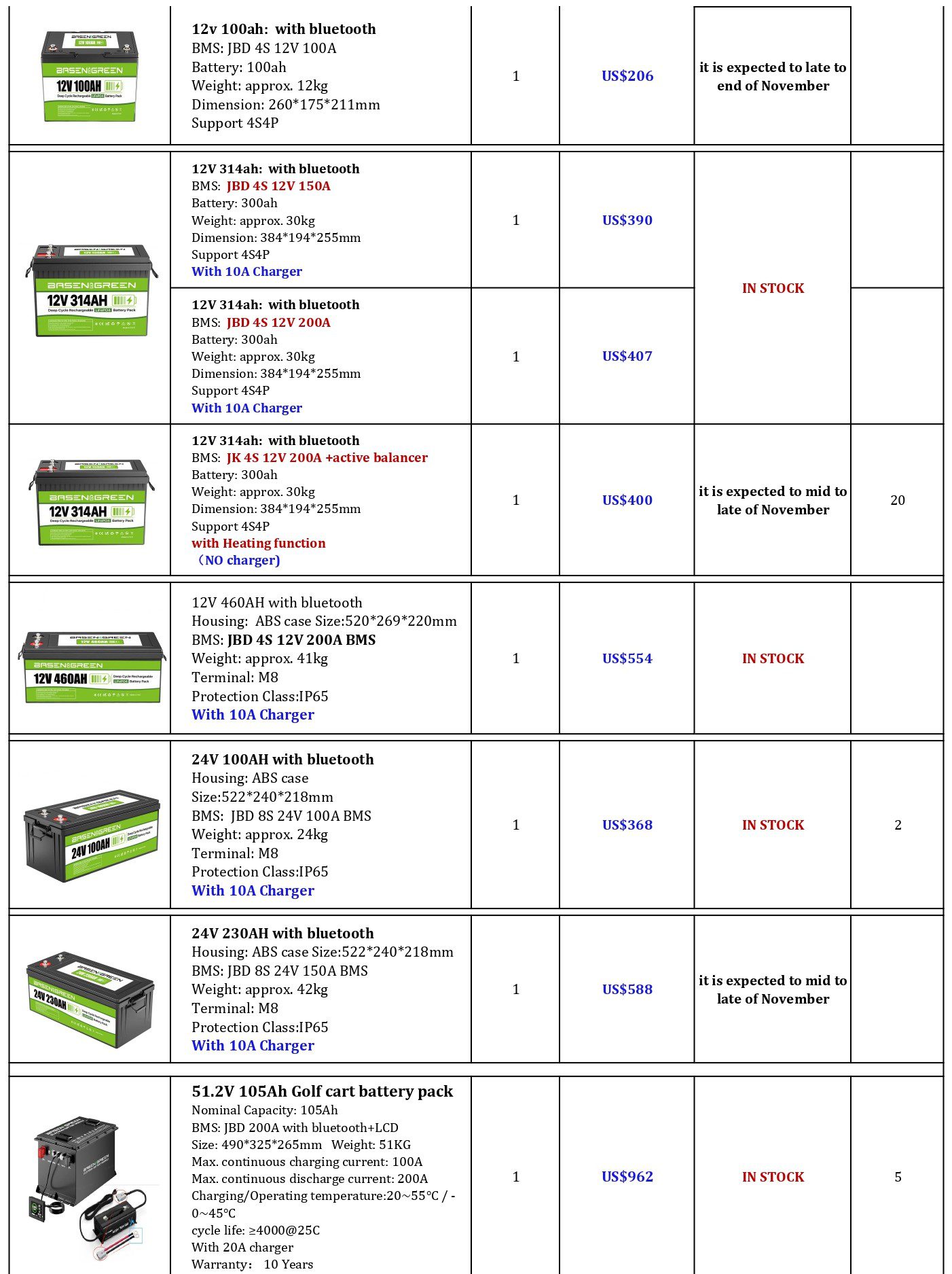 - Para las baterías de 12v o 24v puede haber precio ofertado con BMS smart (con Bluetooth) o BMS normal (sin Bluetooth), por lo que en algunos casos hay que sumar 40$ para BMS Smart (con bluetooth), está indicado en el presupuesto pero asegurarse al pedirla!
